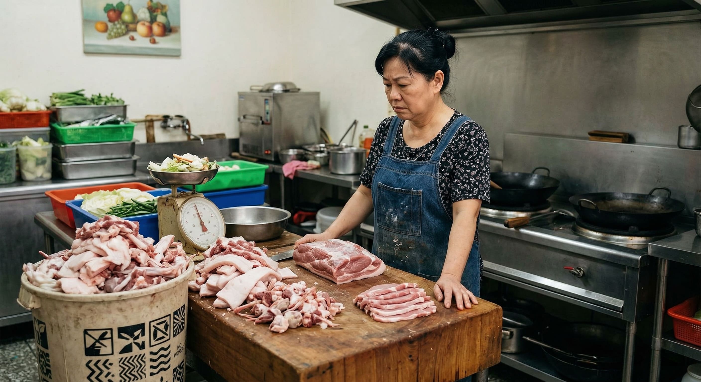 經營便當店與小吃攤,賺的往往是辛苦的銅板價與回轉率。許多老闆習慣每天清晨親自到傳統市場挑選溫體豬肉,回店裡再耗費兩三個小時進行切洗與分裝。這種傳統做法隱藏著巨大的財務漏洞。
